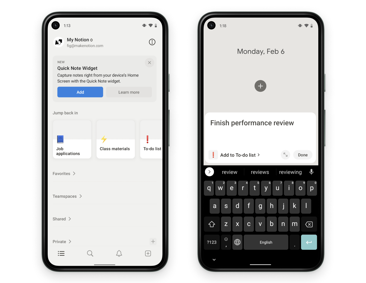 This new feature let's you add quick notes on the go by creating pages with the "Quick Note" widget